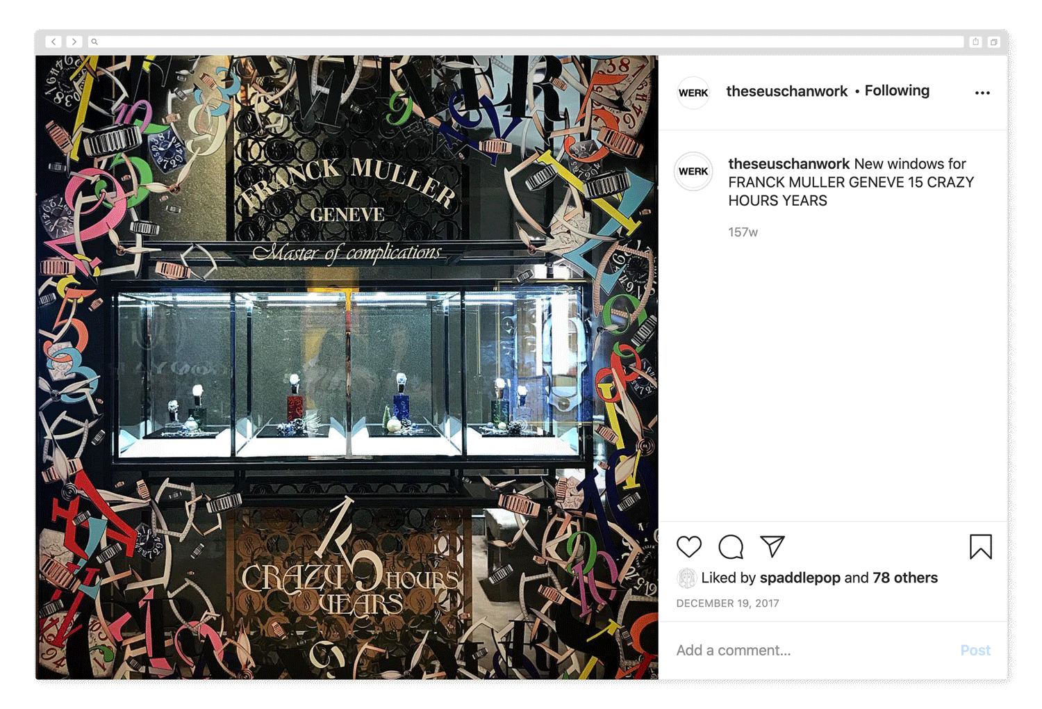 Worked on the campaign for the 15th Anniversary of Franck Muller’s Crazy Hours creations. We played around with elements of the watch and “went crazy” with them, creating Lockups, FPFCs, Window Decals, Party E-Invites and many other collaterals.