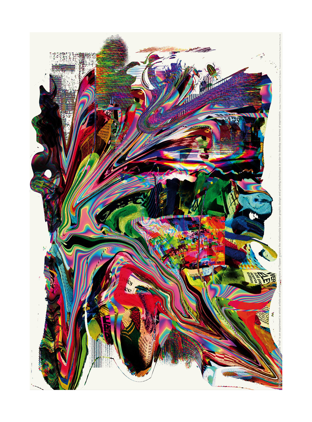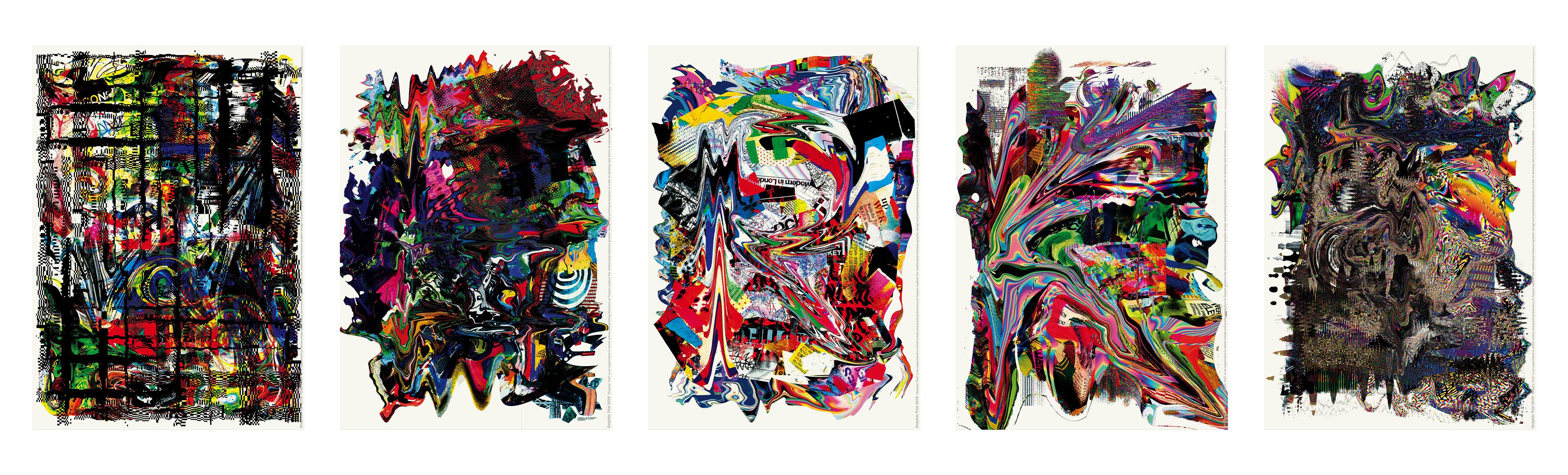 “Digital Graphic data to me are like organic matters. I imagined them being put into a blender and creating a colourful visual abstraction that collapses into an infinite density suspended in motion.”